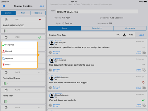- Items & Tasks: assign, prioritize, comment, set deadlines – manage your backlog