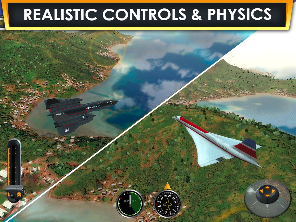 ▶ Arcade and Pro controls (go ‘Pro’ for more realistic flying!)