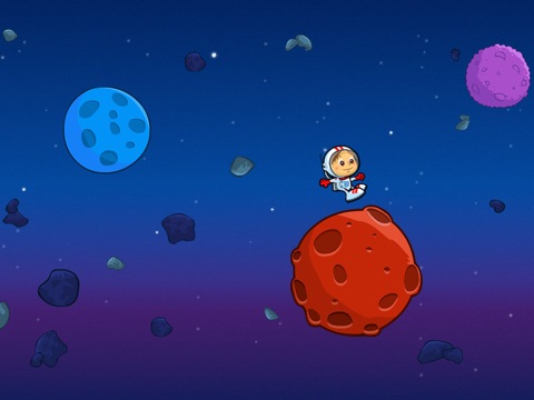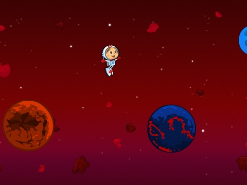 Player is a cute Astronaut who ended up in a space dream, where he see many pretty outer space beauty and then a long wind strikes and all planet started rushing towards him.So he need to jump from planet to planet keeping his position with out losing.