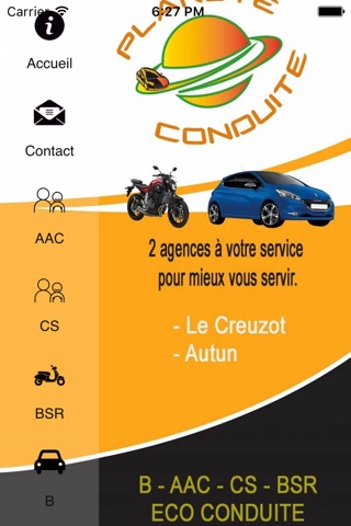 Lapplication "Planète Conduite" vous offre la possibilité de consulter toutes les infos utiles de lauto école (services, inscription, produits, horaires, demande de RDV, avis…) mais aussi de communiquer directement avec l’équipe via la messagerie interne et de recevoir un rappel de vos rendez-vous sous forme de notifications push.