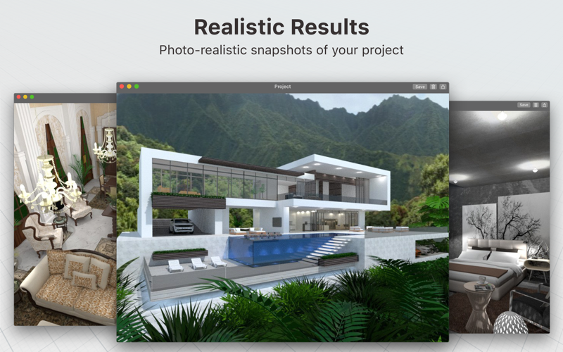 • “Snapshot” function to create photo-realistic images of your projects with realistic lighting, textures, and shadows