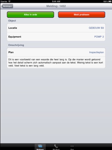 Met de Plant Inspector kun je onderhoudsmeldingen beheren op je iPhone. Gebruik hem als takenlijst, specifiek voor bedrijfsmeldingen.