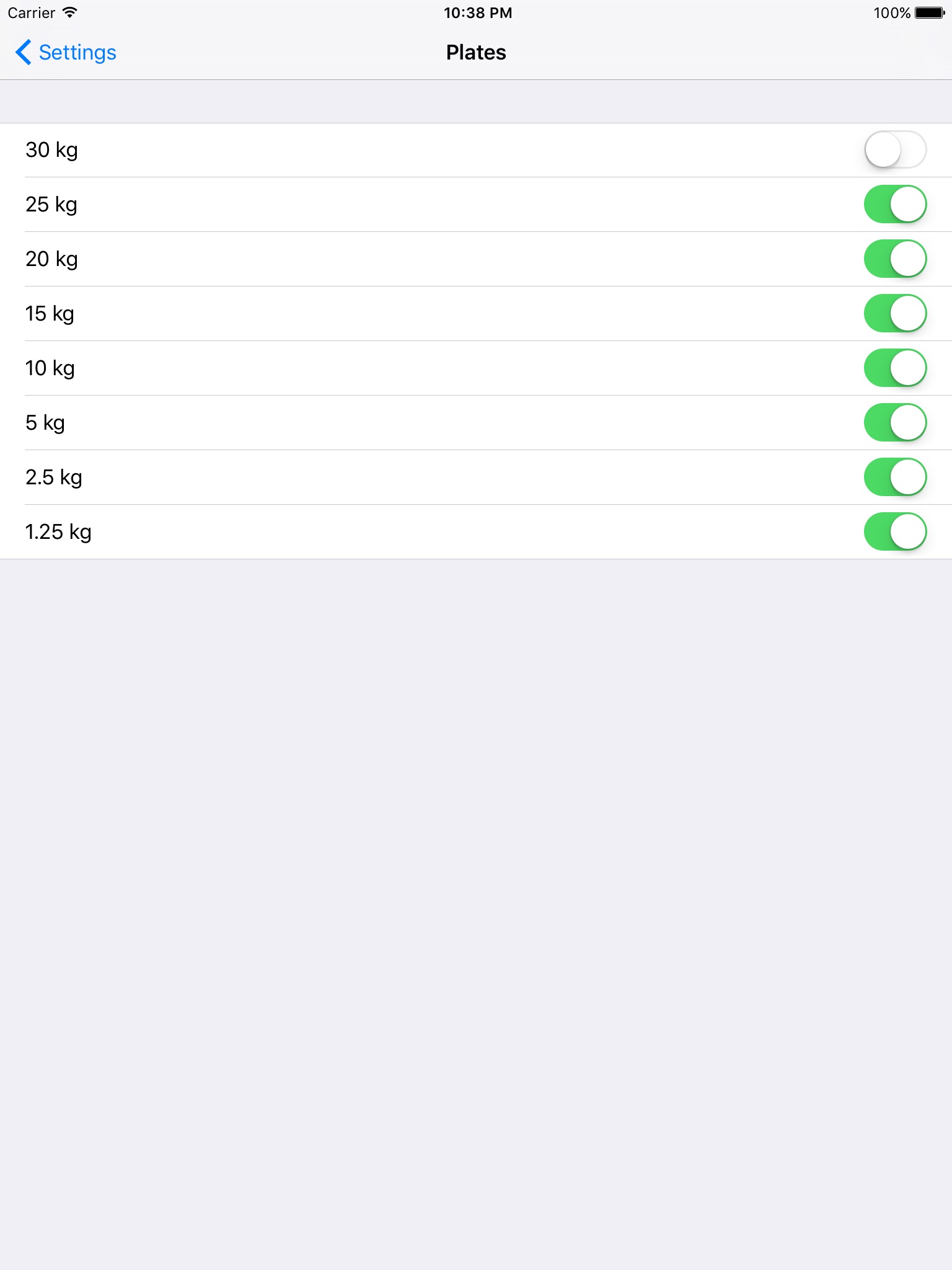 Mark which plates you have access to. Change the weight of your barbell. Switch between pounds and kilograms.
