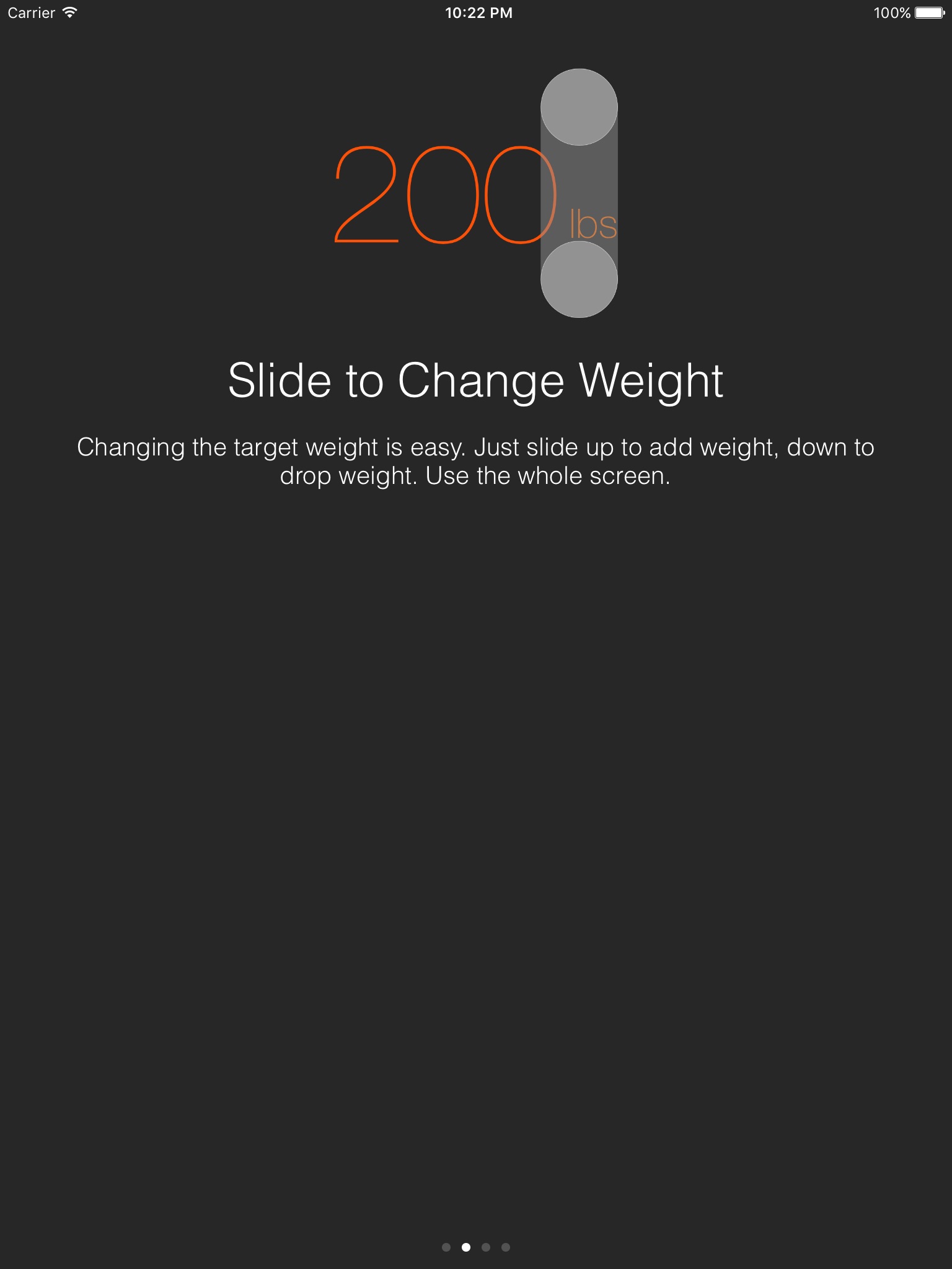 Plate Calculators uniquely designed, blazing fast user interface is what sets it apart from other barbell calculators. Getting from 45 lbs to 200 lbs takes less than a second, and results are displayed *immediately*. Simply slide your finger up and down, using the whole screen, to change the weight.