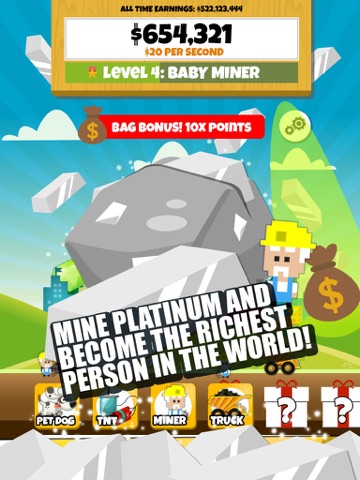 The best platinum mining idle game is back! Click your way past 23 levels to become a billionaire and see the empire you build grow before your eyes as miners, trucks, and even dragons fill up your base!