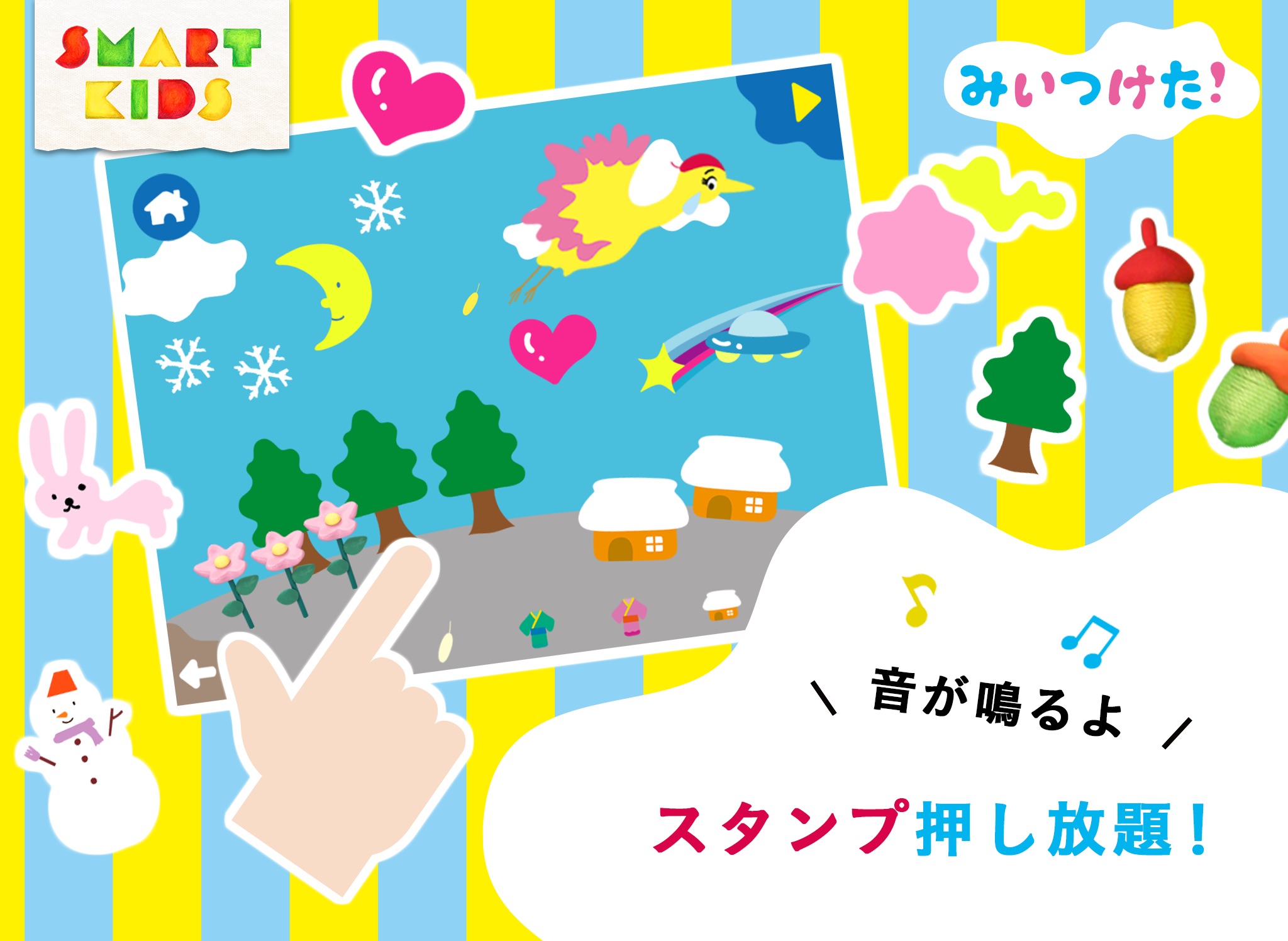 好きなスタンプを自由に押して、お話を再生して何度も楽しむことができます。