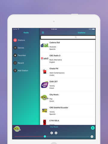 -Search radio stations by country, name, and genres.