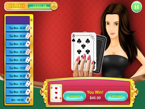 -Bet whether the next card will be red, black, higher or lower.