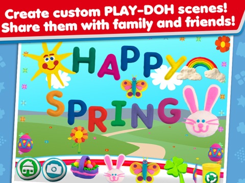 Build your own PLAY-DOH scenes with your PLAY-DOH creations. The PLAY-DOH gallery is just a click away on the ‘create and share’ button. There you can enjoy all the animated, colorful objects you make as you work your way through the letters of the alphabet. Select your favorite background and then bring PLAY-DOH scenes to life with custom PLAY-DOH pictures. Save your creations on your phone or tablet and share them with others!