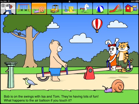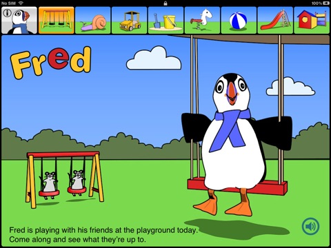 In this wonderfully colorful and fun app, you and your children play at the playground with Fred and his friends. Investigate eight different places around the playground, slide down the slide, swing, play peek-a-boo and see what happens with the balloon that shows up occasionally.