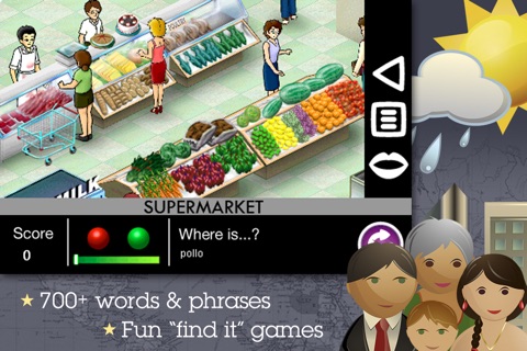 With over 700 words and phrases, Play & Learn Spanish is the fast, fun, and friendly way to learn to speak Spanish! Enjoy fun "find it" games and immersive learning environments as you listen to and speak aloud Spanish words and phrases. Explore realistic settings such as a supermarket or a restaurant, then see how high you can score by finding the pictures to match the words you hear. You’ll be surprised by how much Spanish you’ve learned while you play! Play & Learn Spanish is easy and effective for beginners and travelers and a fun refresher for advanced and intermediate speakers.