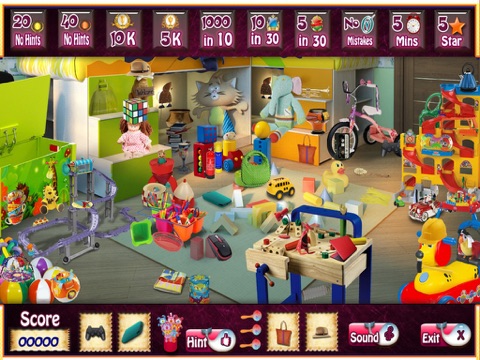 PlayHOG presents Play Room, one of our newer hidden objects games where you are tasked to find 5 hidden objects in 60 secs. Your score is tied with a multiplier that increases as you find the right hidden objects, but beware, make a mistake and it will reset to 1. Try to get the highest score as you try to find all 400 hidden objects in Play Room.