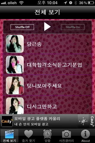 방송에서가 아니라도 싸이미니홈피에서 보면 되죠^^(그래서 앱안에 미니홈피링크도 걸어놨습니다.)