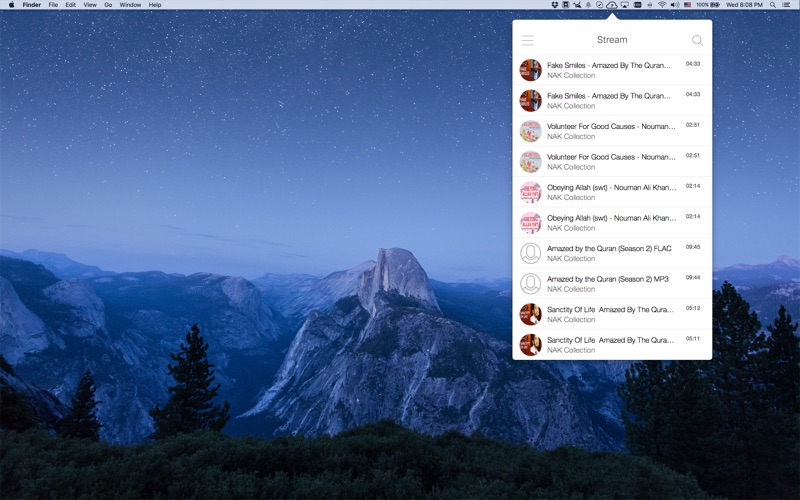 Endlich!!! Schön übersichlich gestalteter Player. Direkter Zugriff über die Menüleiste. Tolles Design, außer das Menüicon könnte ein anderes sein. ;) Man hat Zugriff zu seinen: - Streams - Likes - Playlists - Reposts - Following/Followers