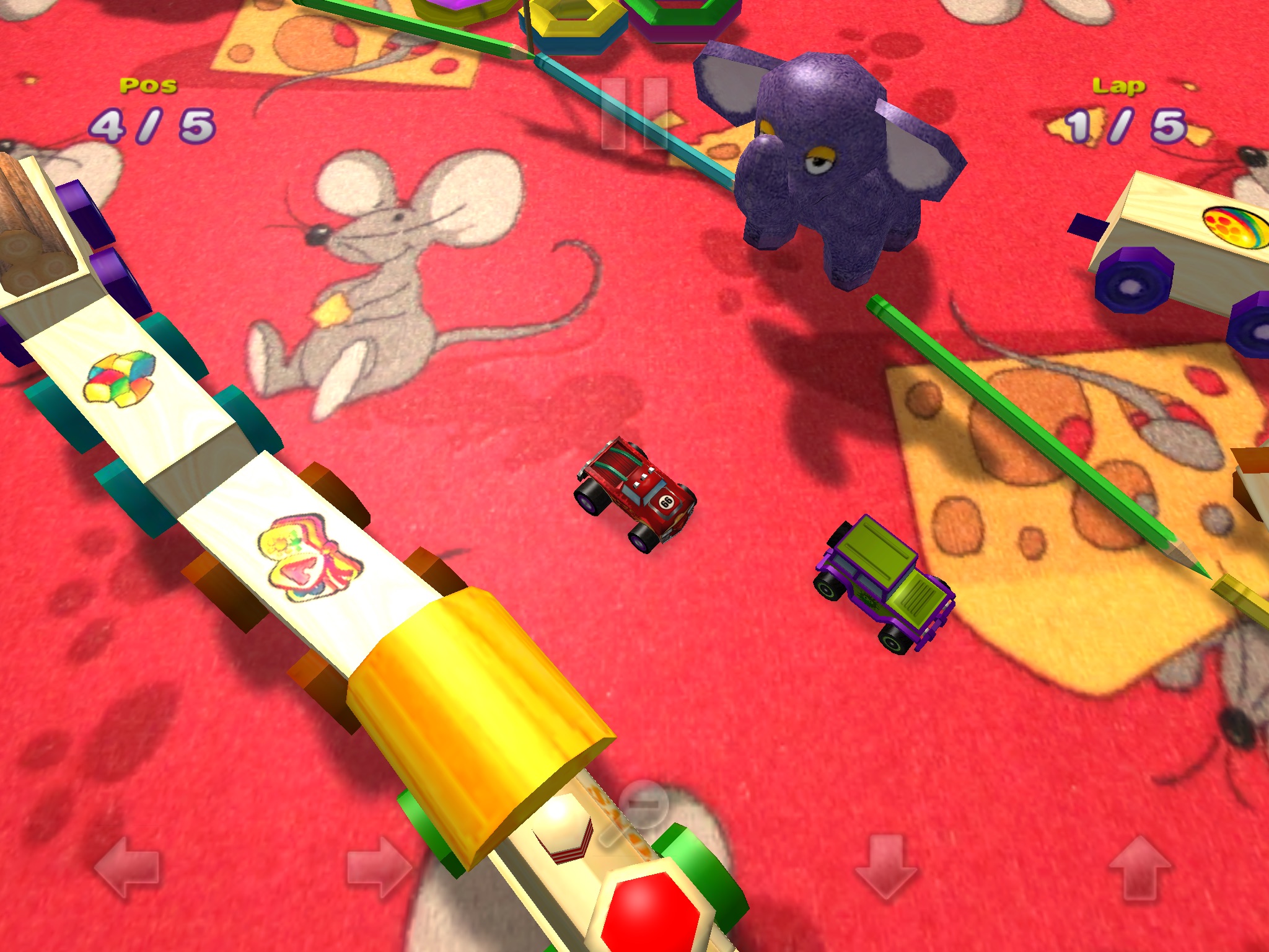 Lustiger kleiner Racer mit sehr guter Steuerung (wie Reckless Racing), realistischer Physik (Kollisionen mit herumliegenden Spielzeugwürfeln und Gegnern), aber zu kurzen Strecken, nervigen Kindertröten-Soundeffekten und verblödender Musikuntermalung in kurzer Dauerschleife. Neue Strecken und Autos muß man sich erst durch Rennsiege und Sternesammeln erarbeiten, was meiner Meinung nach selbst auf der einfachsten Stufe zu schwierig bzw. langatmig ist und daher schnell langweilig wird. Für 0,79€ aber auf jeden Fall den Kauf wert!