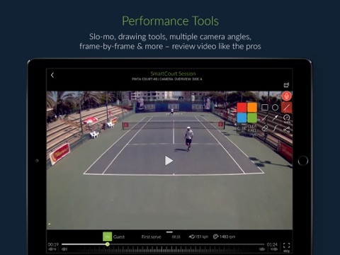 PlaySight’s camera-based SmartCourt system live streams, records video, provides instant replay & professional coaching tools, and much more. And the PlaySight app has many of the same features, regardless of whether you use a SmartCourt or not.