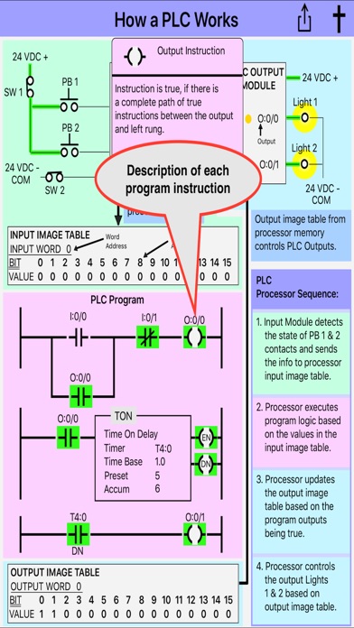 This app also helps people better understand the exam-off instruction -[/]-, the "Seal-In" or "Latching" logic, such as a motor start/stop circuit and much more.