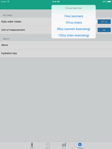 • Change units used (ounces or litres) according to your liking
