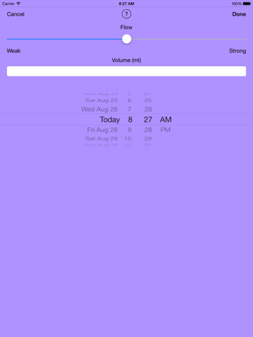 Basic application for tracking urination. You can set flow rate (on a 5-point scale) and quantity each time you void your bladder.