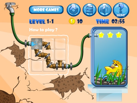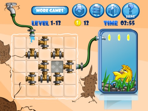 Wheres my water? Asks the gold fish! Sam the plumber has received a fish, but the tap is not working. In Plumber Game you must connect the pipes in order to get water to the fish. Theres a blank tile that you can move. You can move pipes to this position. I Need Water, the fish screams as the 40 levels increase in difficulty. The fish needs a smarter plumber with each level! Connect all the water pipes in order to finish each level on time.