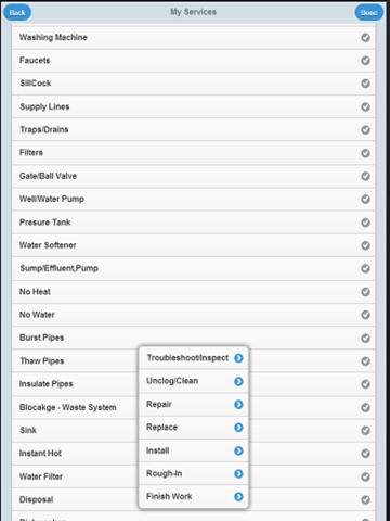 - Choose the plumbing services from a list rather than inserting them manually