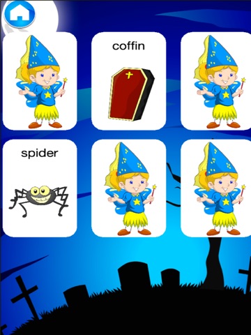 Quiz: A fun quiz that asks the child to match words and images. In Level 1, the quiz focuses on discovering new vocabulary. In Level 2, users tap on the Halloween image that matches the written word. In Level 3, the challenge is reversed and users must find the written word that corresponds to the image. Each area includes five questions, giving kids a chance to learn and practice more than 40 new words. Users must demonstrate mastery of a word before a new one is introduced. Successful game play is rewarded with interactive animations and an animal sticker for use in the app’s sticker game.