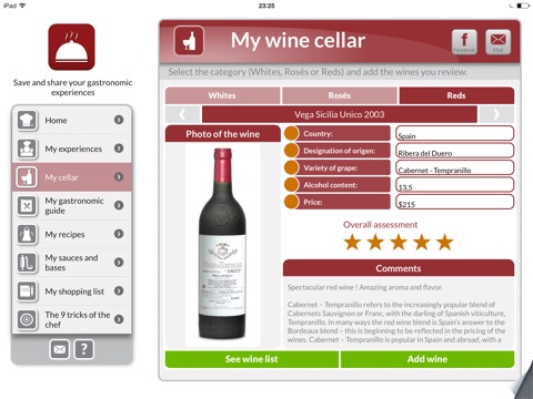 Plus Gourmet also lets you create your own your own wine diary so you always have information about your favorite wines ready and can add to it on the go whenever you want. You’ll also be able to easily share this information with friends.