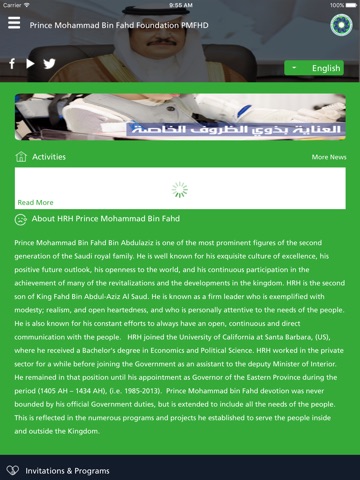 تطبيق تعريفي عن الامير محمد بن فهد وعن المؤسسه الخاصة به