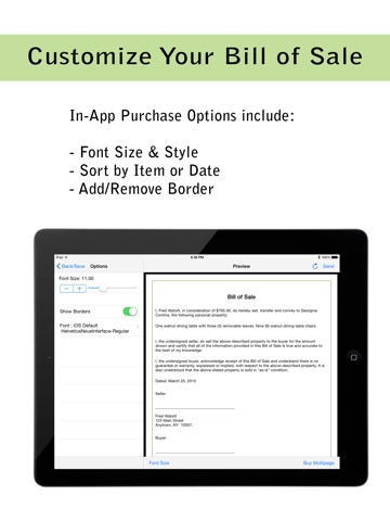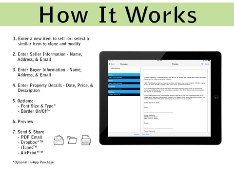 You’ll get a basic bill of sale receipt that you can email (pdf) to your buyer! Or view more sharing options below with In-app purchases.