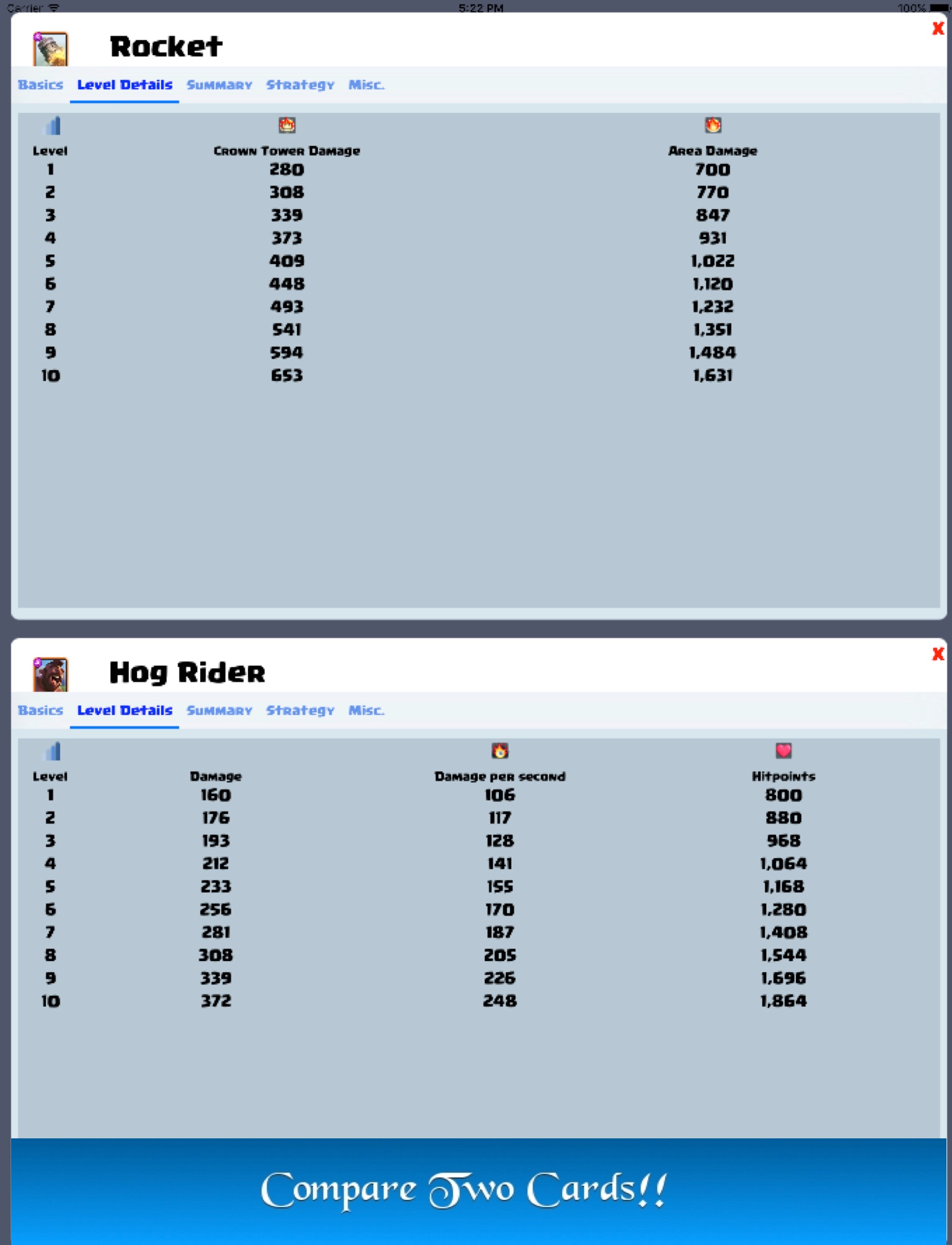 - Detailed information of every card. Including basic info, data in each level, summary, strategy and updates.