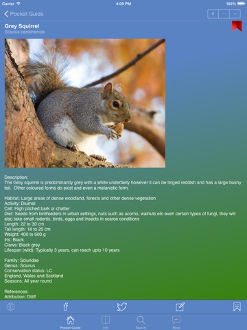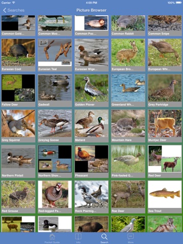 Detailed information is included on Deer, Game birds, Geese, Ducks, Waders, General game such as Rabbits, Hares and Wild boar etc covering distinguishing features and key points such as seasons to aid identification along with images for all entries that can be zoomed for more detail.
