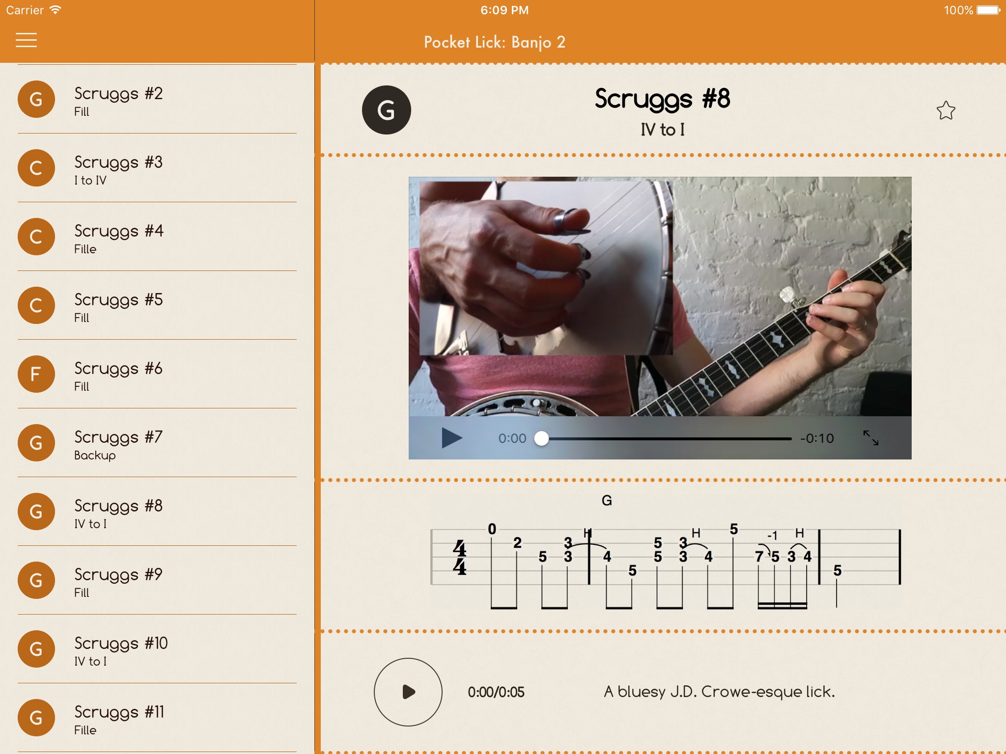 Our lick library includes licks from legendary players like Earl Scruggs, J.D. Crowe, Scott Vestal, Bela Fleck, Noam Pikelny, and more!