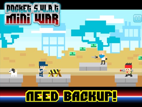 Pocket SWAT Mini War is a fast paced endless running and shooting game where you have to destroy all incoming enemies and avoid getting killed. Use those Pocket SWAT to destroy all obstacles that are along the way and get those limited power ups and extra life to have a great lone western of a lifetime.