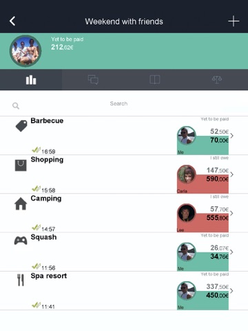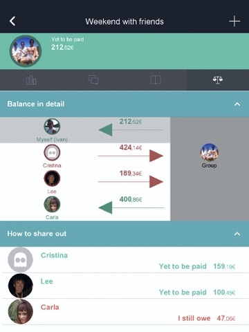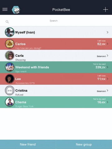 PocketBee will display to whom you owe money and who is yet to pay his debt back to you (choose between equitable/non equitable distribution of the costs).