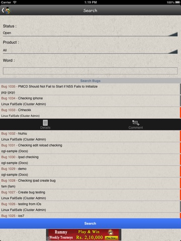 * Similarly, select a product and a bug status on your own in which you want to search the bugs.