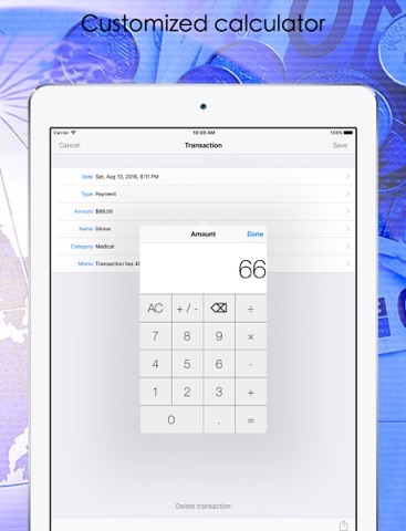 You can easily input your daily transactions. You can choose description of transaction from history, much less keyboard operations. Also you can fix balance with simple operation.