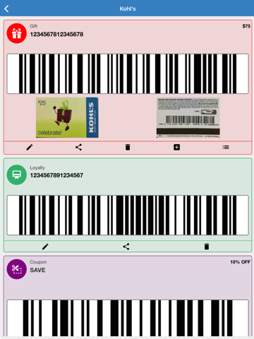 - Store your gift cards, loyalty cards and coupons by scanning the barcode or entering the card number.