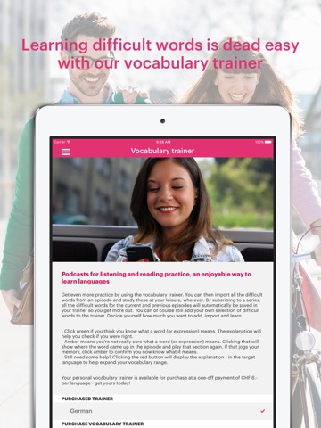 Vocabulary trainer (one-off payment CHF 6.- per language)