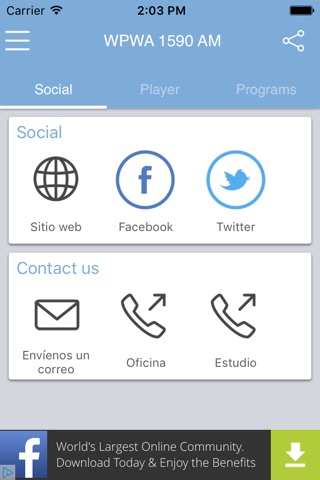 2. Makes you a part of Poder 1590 Radio community, giving you access to the most important online communities the broadcaster has: