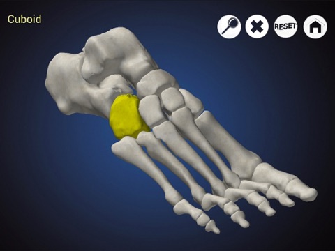 * Interactive 3D representation of the skeletal system of the foot, where each bone can be identified and isolated for a better analysis.