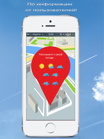 Принцип работы Погода NOW — это не прогноз погоды в его привычном понимании: с помощью него вы не сможете посмотреть погоду на завтра, на неделю и тем более на месяц вперед. Погода NOW отражает точную погоду в реальном времени: такие же пользователи, как вы, передают данные о погоде в их местонахождении. Чем больше пользователей — тем более точный прогноз. Присоединяйтесь и предупреждайте других о внезапных осадках или смене погоды.