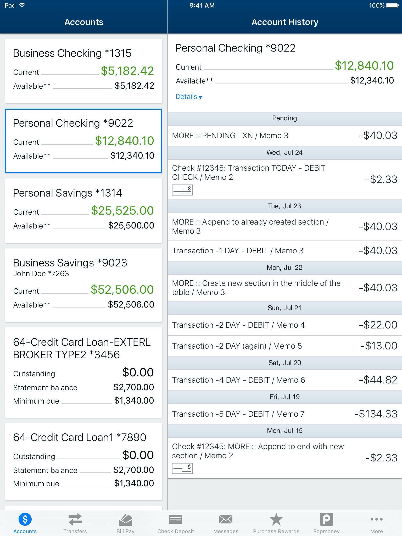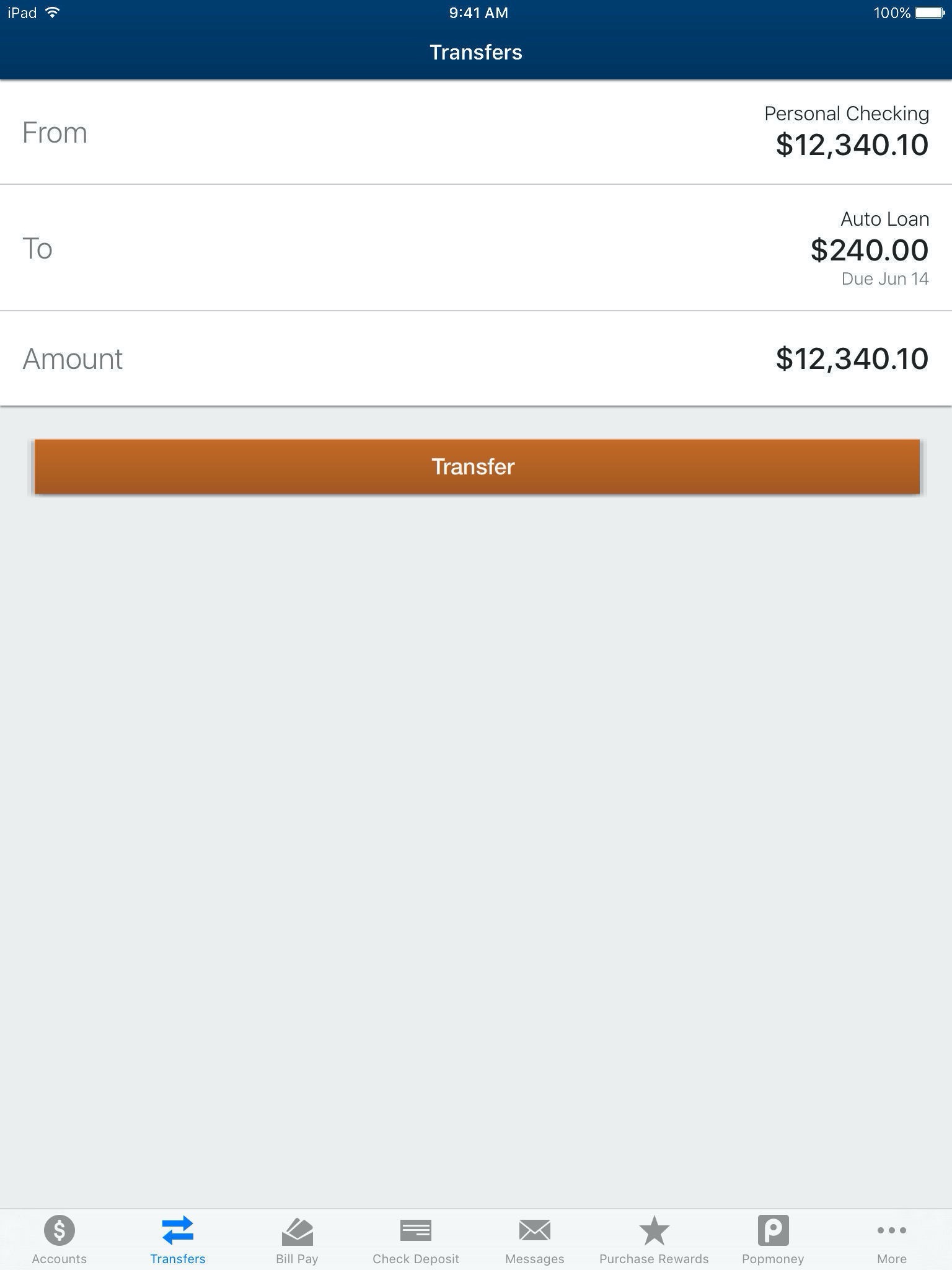 •Transfer Funds – transfer funds between accounts, view recent and scheduled transfers