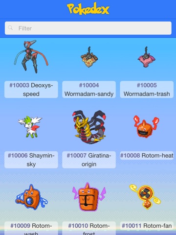The Pokédex app has a wealth of information on all the Pokémon creatures from the entire game series. On the main page you can see the various stats of each Pokémon.