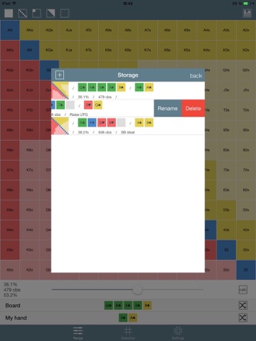 1) Calculation of the equity against a range of hands;