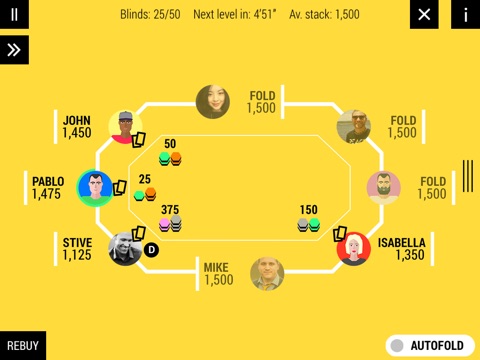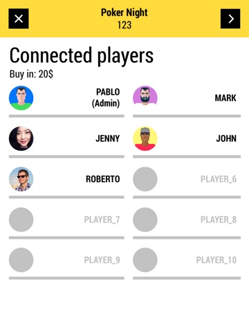 One of the players needs to create a private tournament and set the rules (starting stacks, blind levels, payouts), others can join the group by selecting the room from the list and entering the password. Each player will need a smartphone to play (later we will allow for the same device to be used by several players).