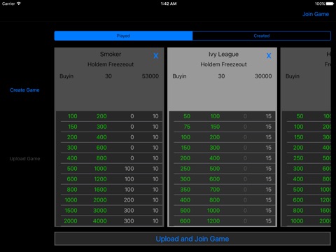 • Create game templates(tournament name, buy-in, blind levels) for Poker Smoker.