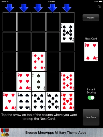 GRAVITY POKER: A variant of Poker Square with a challenging gravitational constraint. You choose into which column the next card will fall. Three wildcards are added to spice things up.