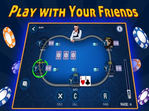 * Easy-to-use, attractive interface: one tap call, raise, check, fold
