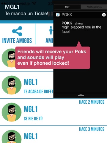 Here is POKK! is a push messaging and Chat to stay in touch with friends, family and contacts! Send a Kiss, a Laugh, or a Slap in the face to your friends! Even if your pals phone is locked, the POKK message will show up and play the custom sound!