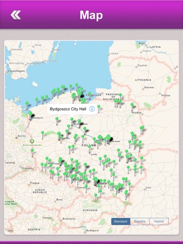 ◆ Map : Locates the Poland and the user location on map. Once the user opens the Map, it points us the all Hotels and Attractions of Poland. Has the call option and can check the address of the Hotel or Attraction. GPS facility is enabled to show the directions and route map.